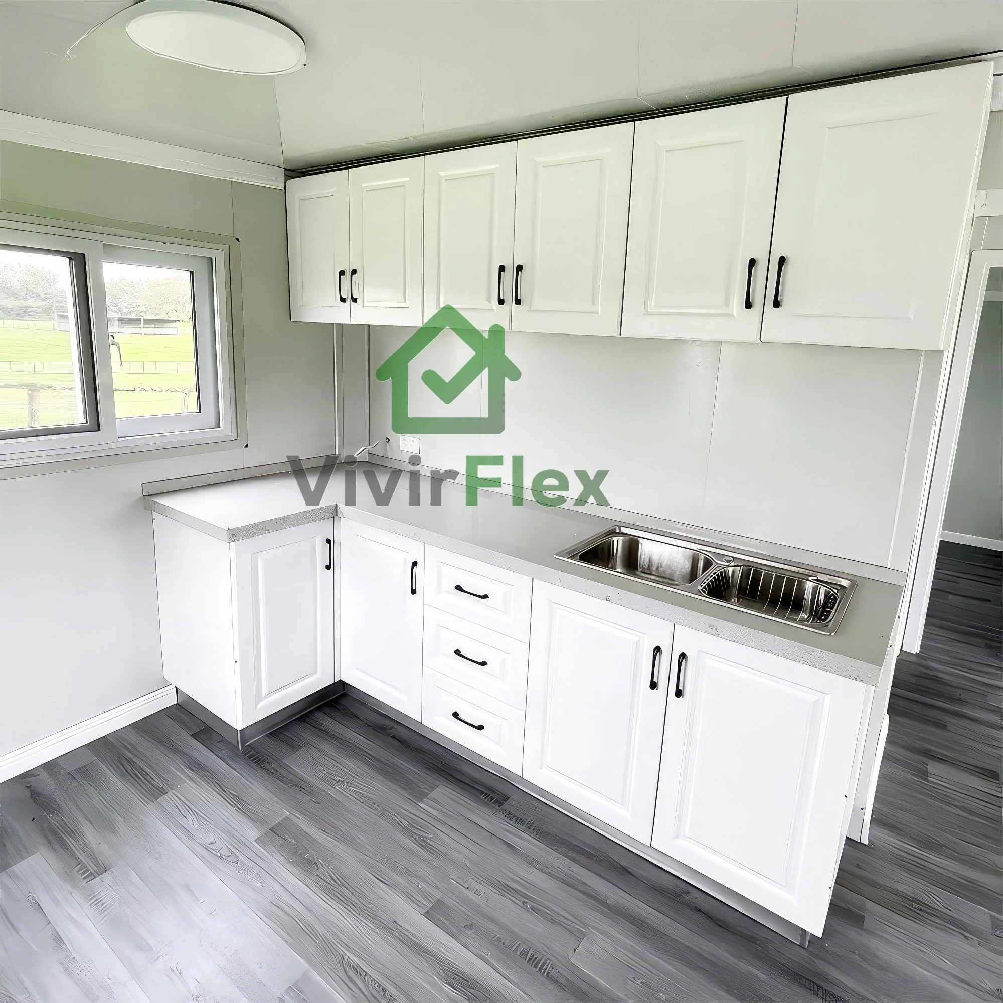 VivirFlex te ayuda a crear espacios únicos adaptados a ti. Fabricación bajo controles estrictos, materiales de máxima calidad y un nivel de personalización que va desde la distribución interior hasta el color de cada detalle. Diseña tu casa como la imaginas: suelos, ventanas, puertas, terrazas y acabados a medida. Y todo con la garantía de estar accediendo al mejor precio de mercado, sin renunciar nunca a calidad ni diseño.