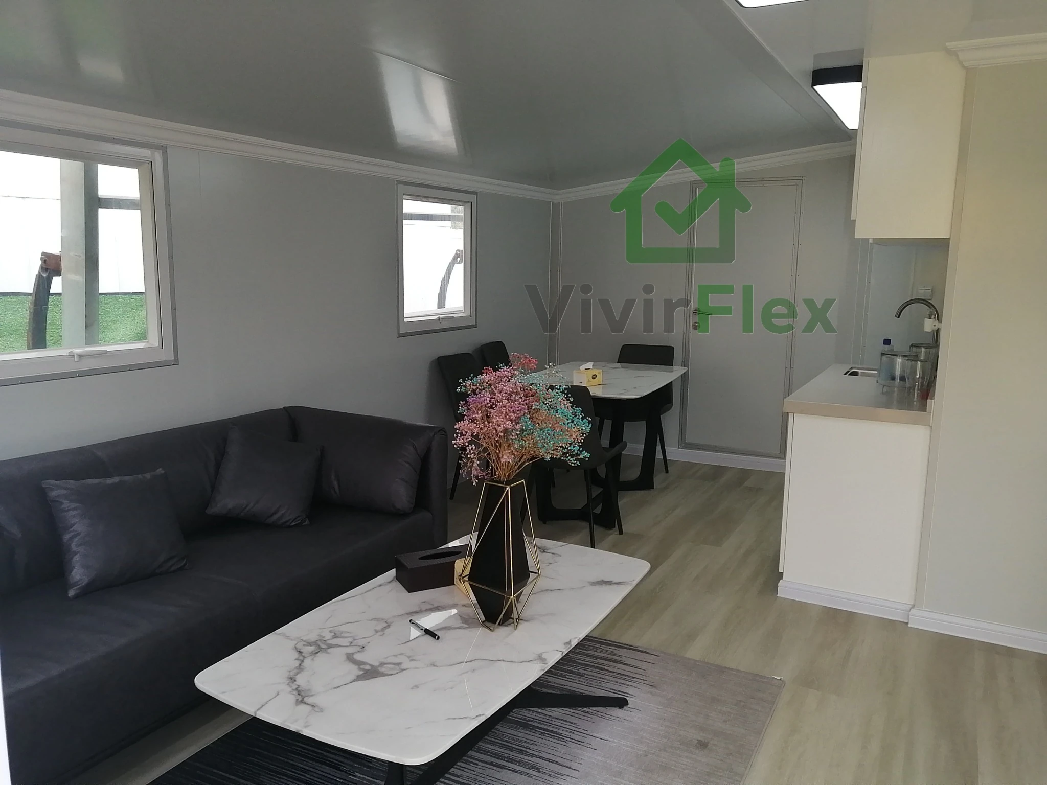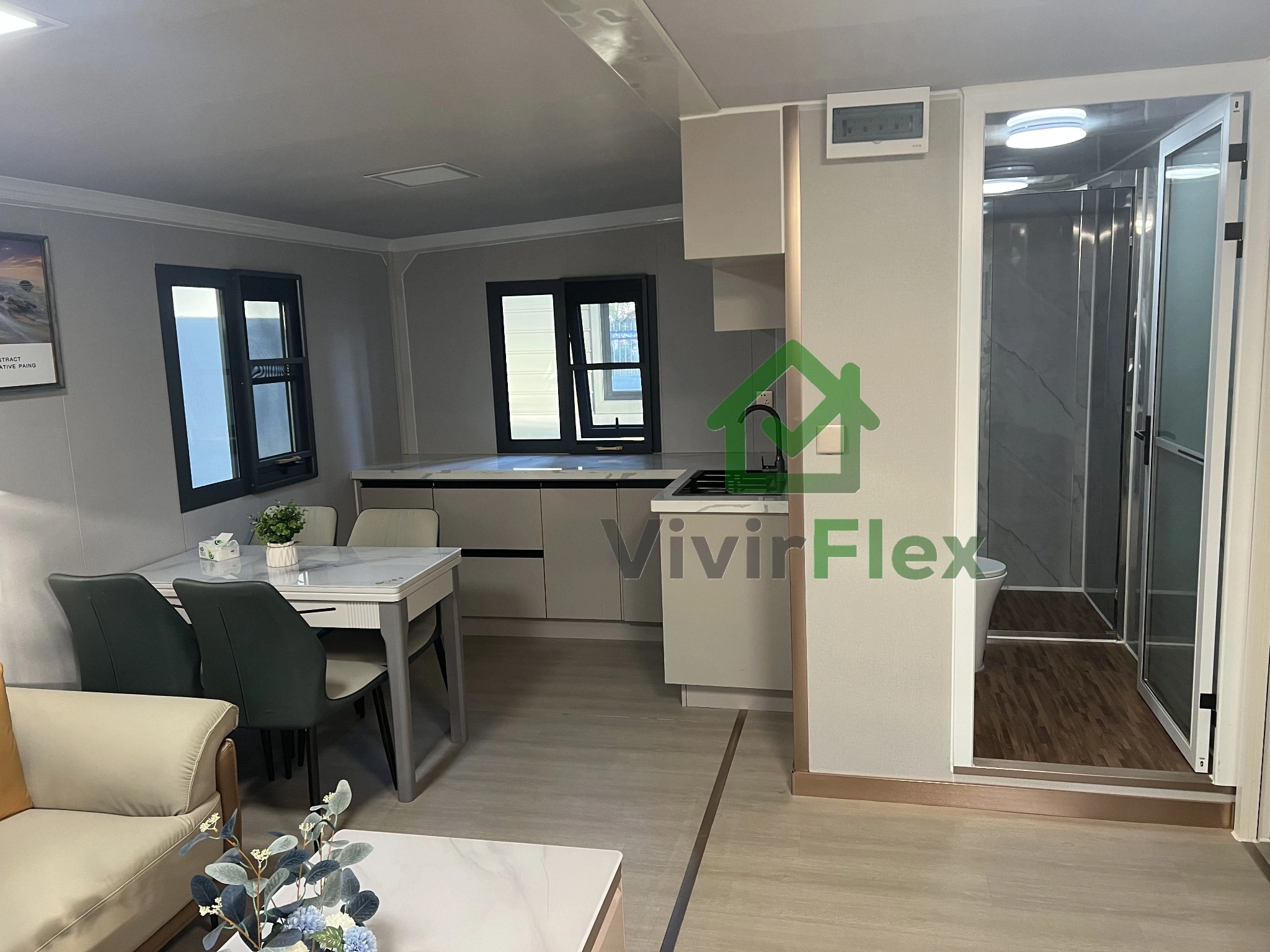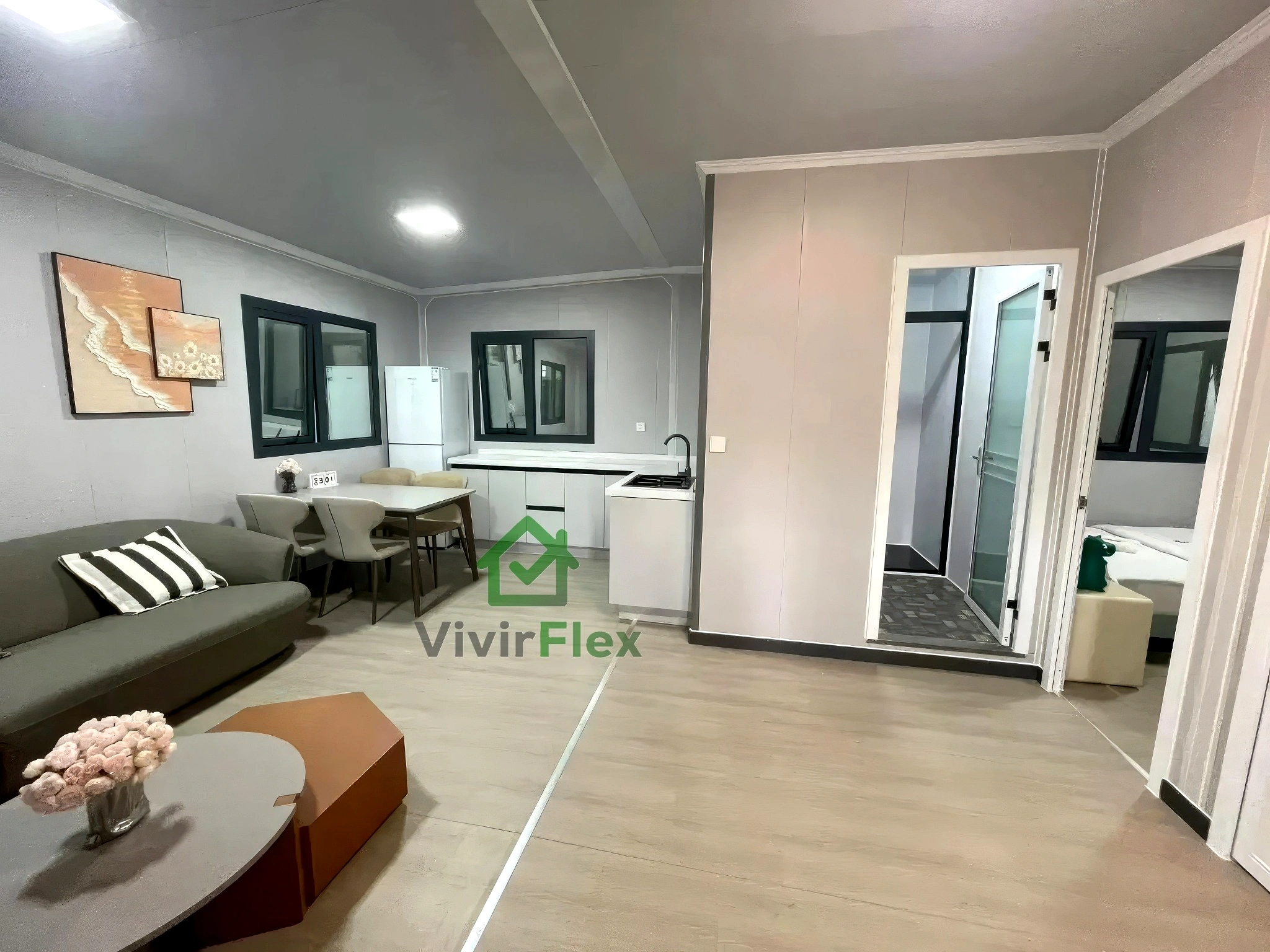 VivirFlex te ayuda a crear espacios únicos adaptados a ti. Fabricación bajo controles estrictos, materiales de máxima calidad y un nivel de personalización que va desde la distribución interior hasta el color de cada detalle. Diseña tu casa como la imaginas: suelos, ventanas, puertas, terrazas y acabados a medida. Y todo con la garantía de estar accediendo al mejor precio de mercado, sin renunciar nunca a calidad ni diseño.