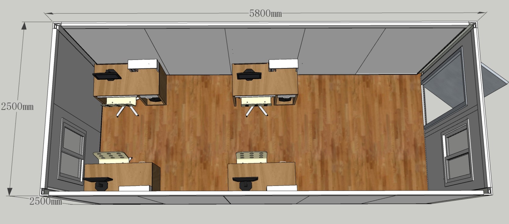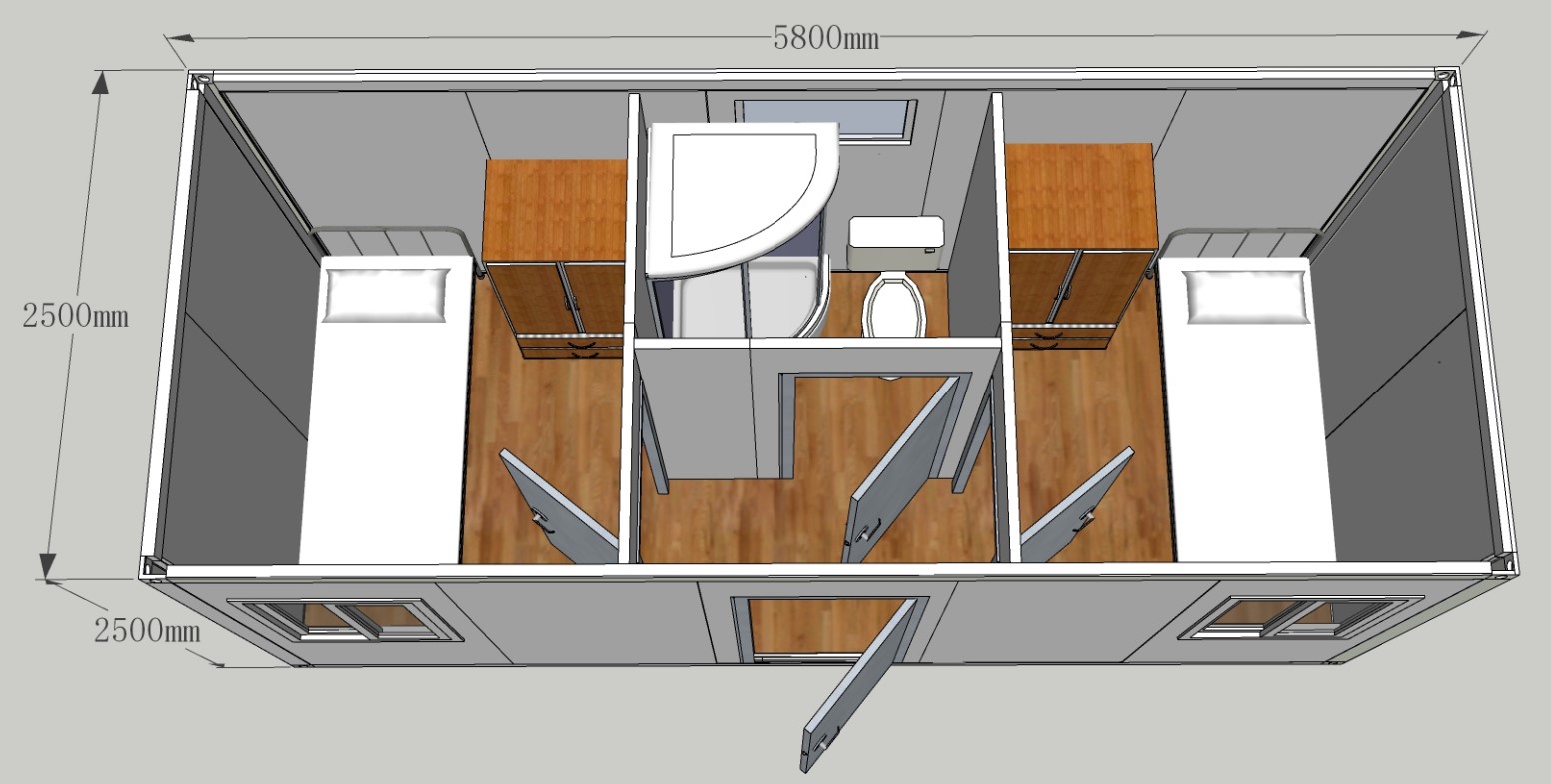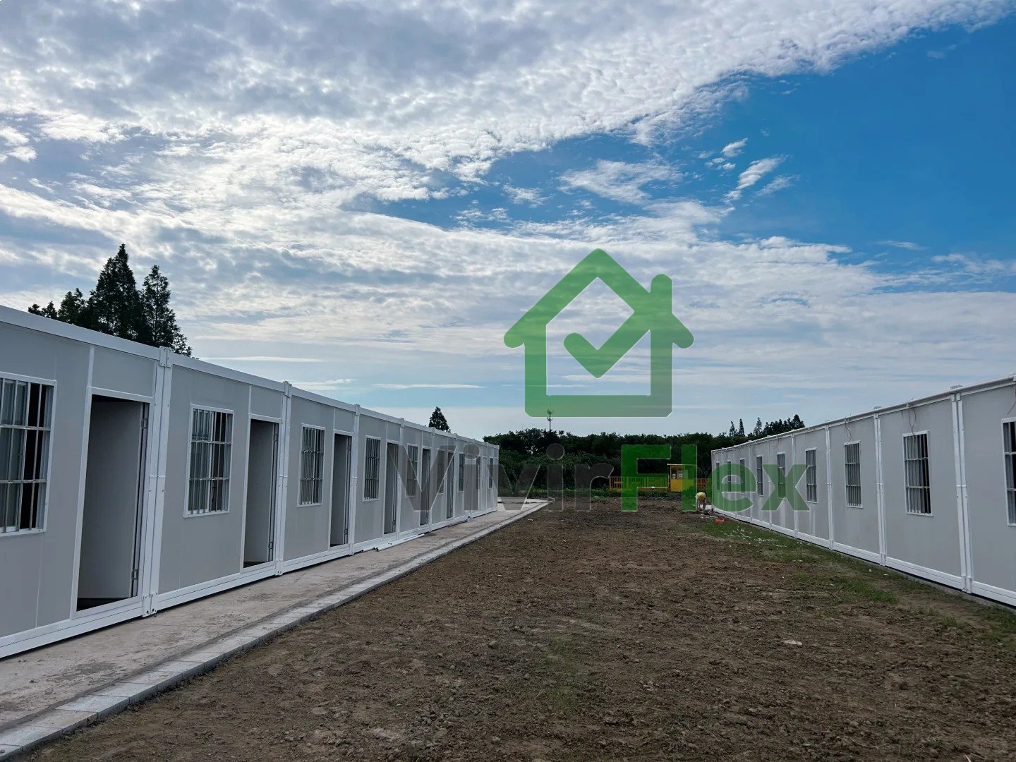 Este modelo plegable es ideal para oficinas temporales, alojamientos modulares, salas de reuniones, campamentos de obra, aulas móviles y puestos de emergencia. Su diseño abatible permite un montaje rápido en destino, con un ahorro logístico significativo ya que se pueden transportar hasta 5 unidades plegadas en un solo contenedor marítimo.