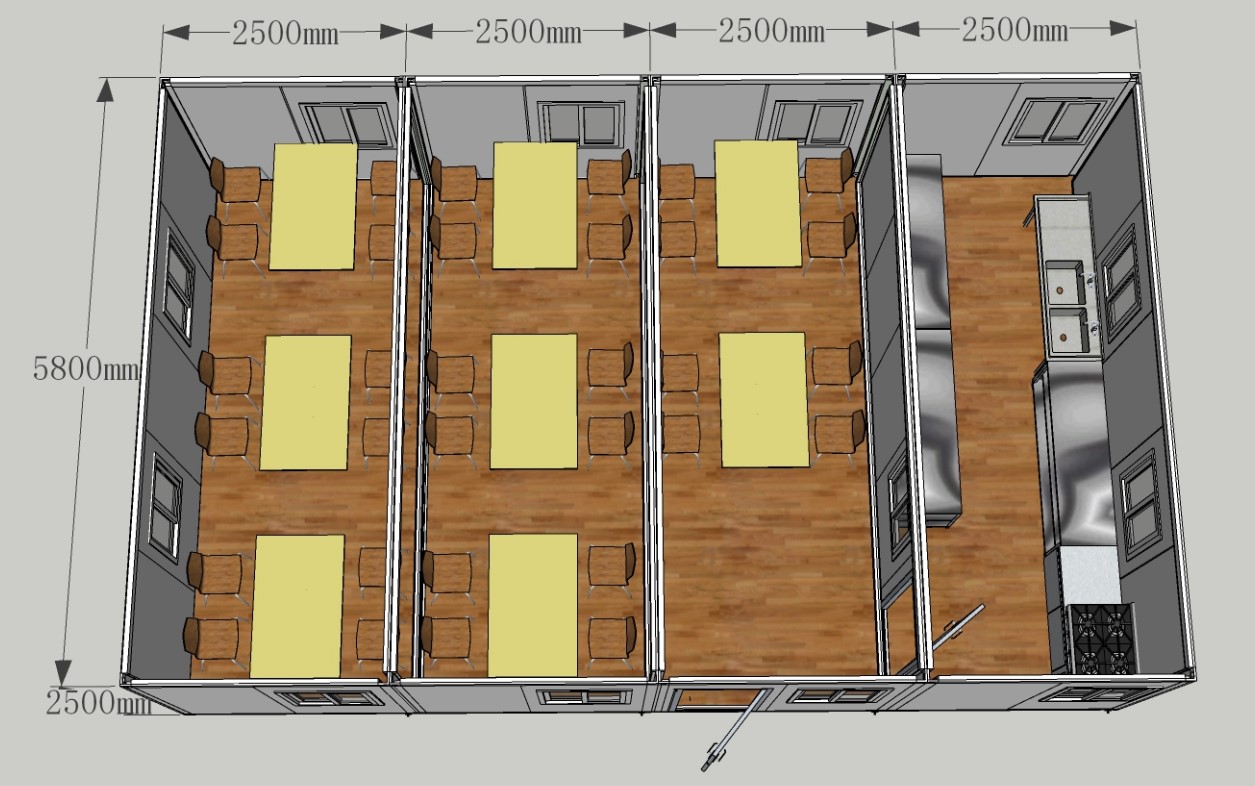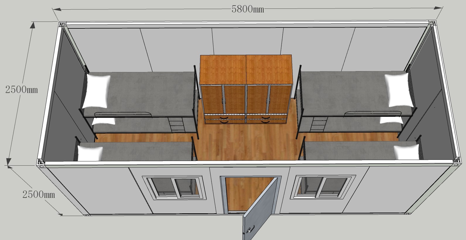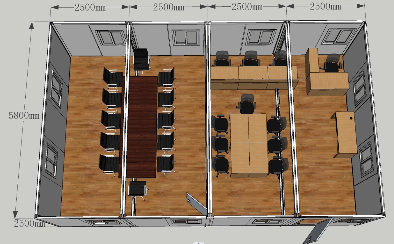 Este modelo plegable es ideal para oficinas temporales, alojamientos modulares, salas de reuniones, campamentos de obra, aulas móviles y puestos de emergencia. Su diseño abatible permite un montaje rápido en destino, con un ahorro logístico significativo ya que se pueden transportar hasta 5 unidades plegadas en un solo contenedor marítimo.
